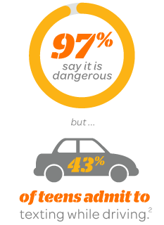 - 97 percent of teens say texting while driving is dangerous — but 43 percent admit to doing so.